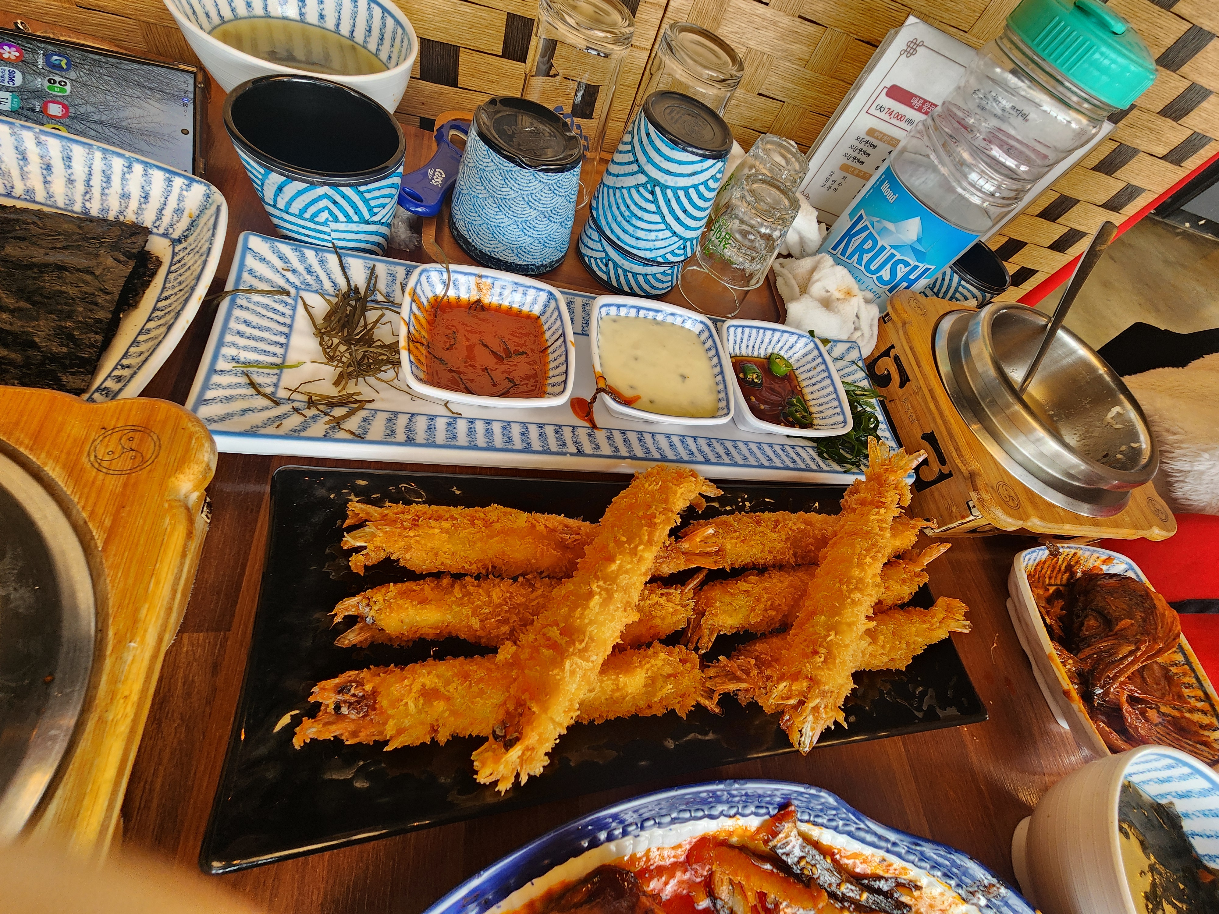 3. 갓 지은 돌솥밥과 바삭한 새우튀김