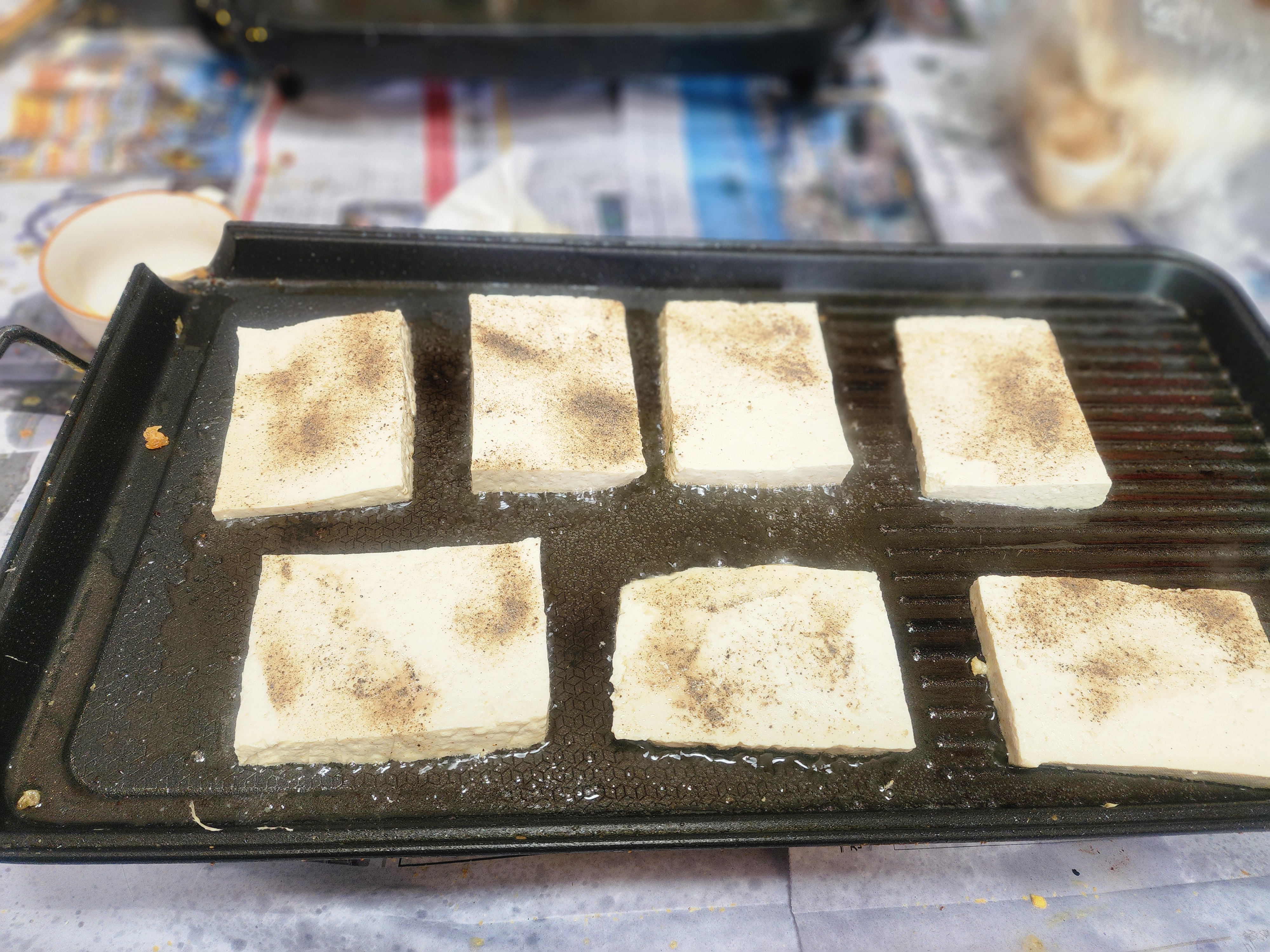 - 두부 부침: 들기름 넉넉히 두른 팬에 후추 톡톡 뿌려 노릇하게 구워낸 두부는 소박하지만 가장 질리지 않는 맛이죠.