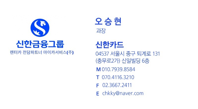 장기렌트를 알아보니 정말 광고가 너무 많더라고요. 그중에서도 저희가 선택한 분은 신한금융그룹의 장과장님이었습니다.