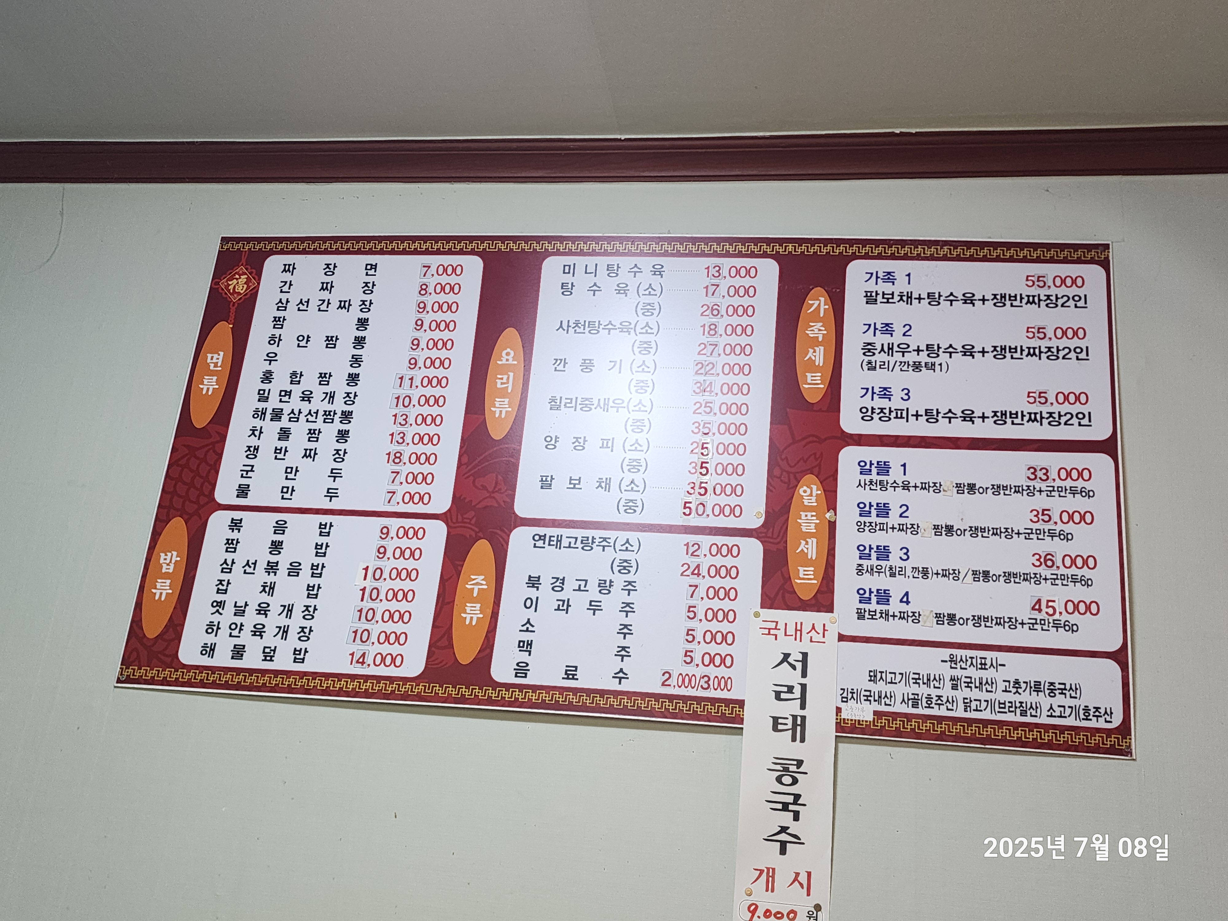 - 짜장면 7,000원 / 짬뽕 8,000원